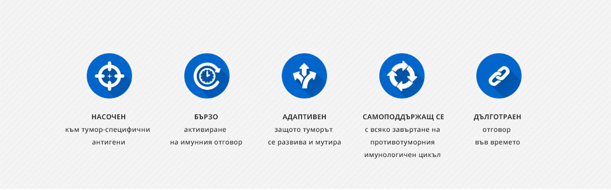 Имунният отговор е в състояние да се адаптира с развитието на рака и може да се самоподдържа след инициирането на противотуморния имунологичен цикъл. Имунотерапевтичните стратегии имат за цел да засилят тези характеристики, с цел да предизвикат траен противотуморен ефект.3-5