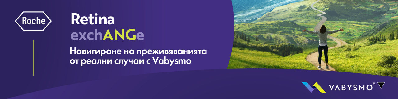 На 12 юни 2024 се проведе първият Retina ExchANGe уебинар на тема "Навигиране на преживяванията от реални случаи с Vabysmo". Този уебинар е организиран за специалисти, които искат да задълбочат опита си и да оптимизират подхода си към лечението на nAMD и DME.