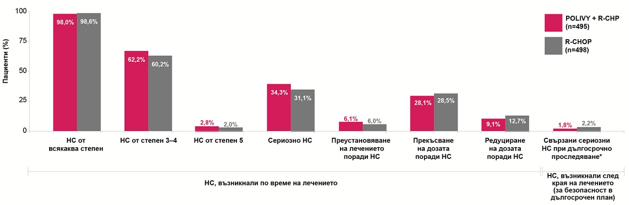 Резултатите от проучването POLARIX потвърждават вече познатия профил на безопасност2 на POLIVY в комбинацията POLIVY® + R-CHP. Проучването показа, че профилите на безопасност на POLIVY® + R-CHP и R-CHOP са сравними.1