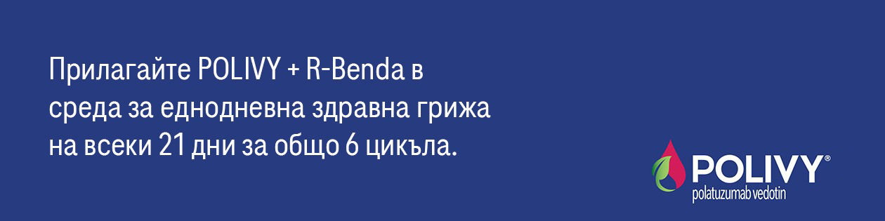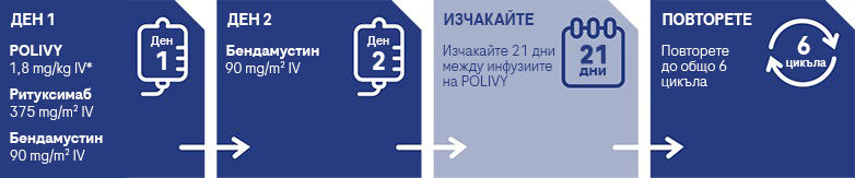 - Прилагайте POLIVY + R-Benda в среда за еднодневна здравна грижа на всеки 21 дни за общо 6 цикъла1