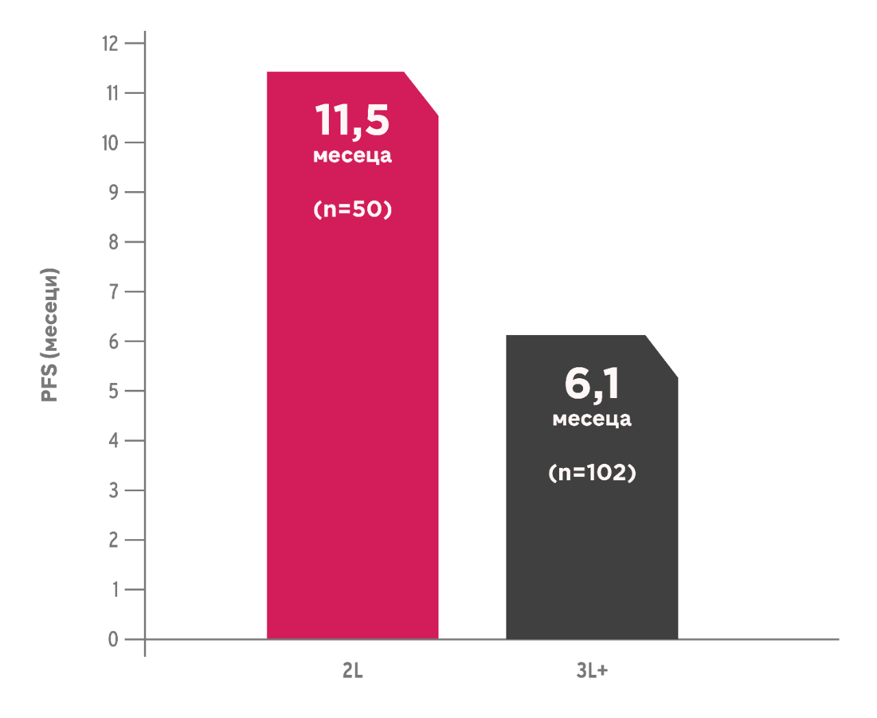 - PFS за POLIVY+R-Benda 11=5 месеца при 2-ра линия на терапия и 6.1 месеца при 3-та+ линия2